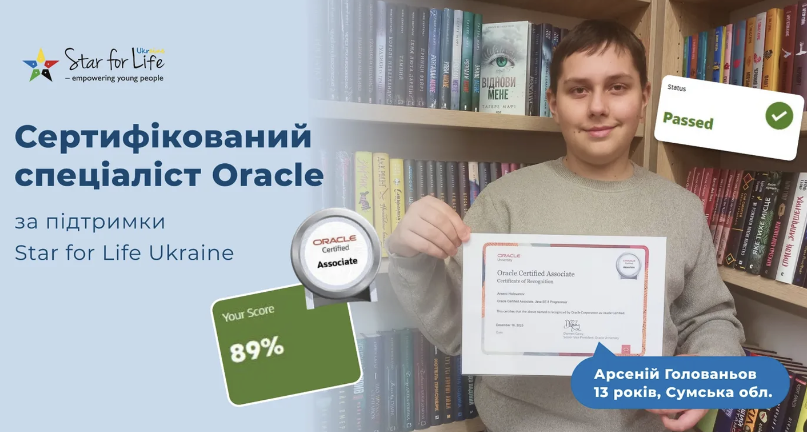16 грудня 2025 року хлопець успішно склав сертифікаційний іспит Oracle, набравши 89 % за мінімально необхідних 65 %.