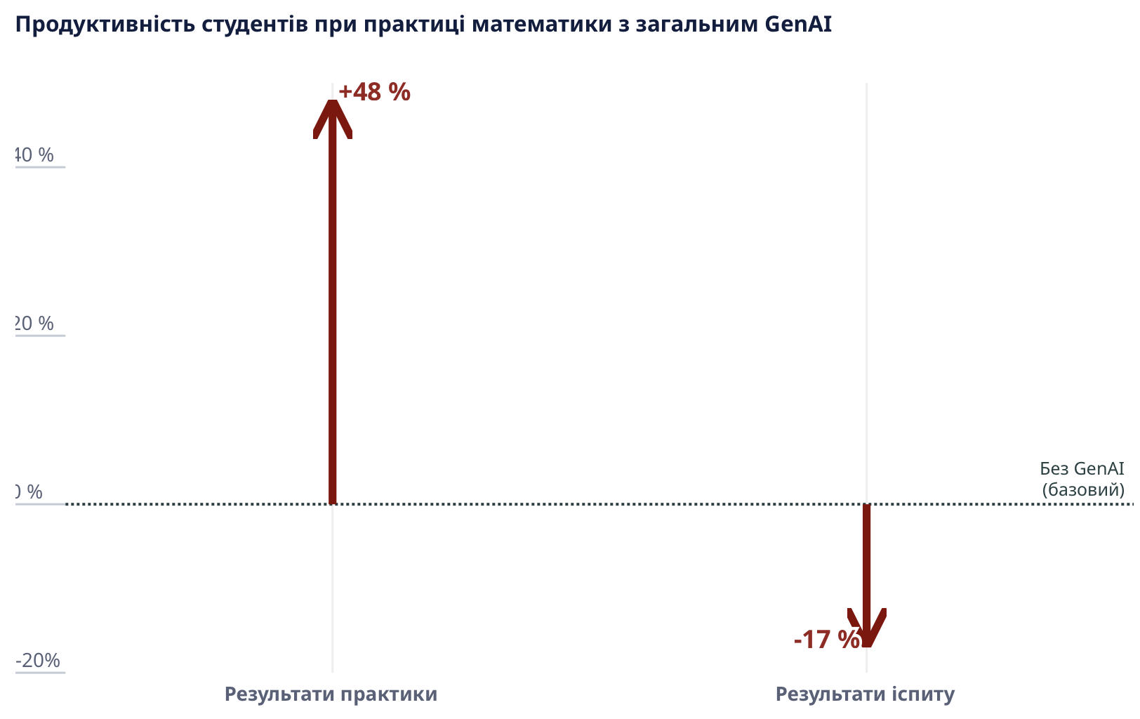 У звіті наголошується: успішне виконання завдання за допомогою GenAI не означає автоматичного навчання. Дослідження показують, що хоча інструменти загального призначення підвищують продуктивність учнів / учениць і якість виконаних робіт, ця перевага часто зникає під час іспитів без доступу до ШІ.