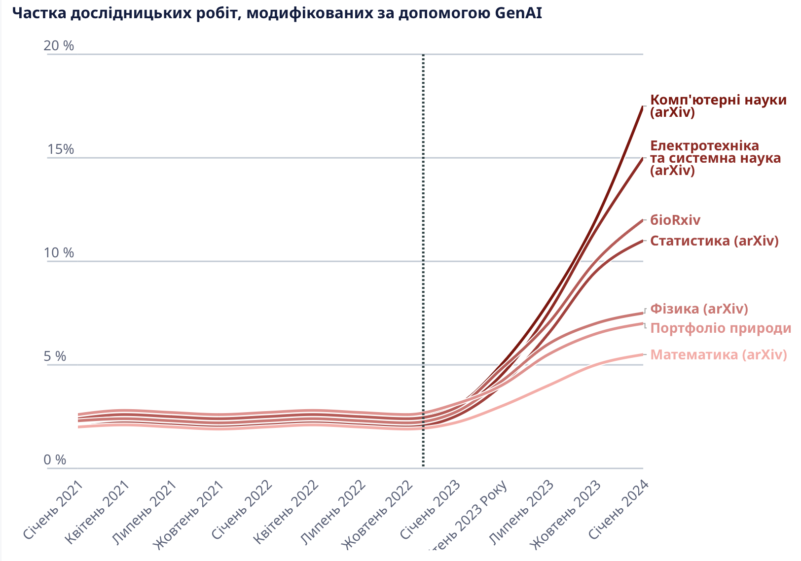 GenAI також трансформує наукові дослідження. Після запуску ChatGPT дедалі більше дослідників/ць використовують інструменти генеративного ШІ для зворотного зв’язку щодо статей, аналізу даних та інших етапів наукової роботи.