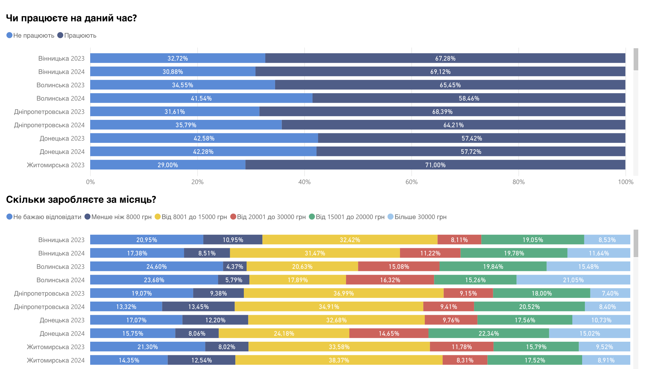 Офіційна зайнятість: 63 % працевлаштованих мають постійну офіційну роботу. Проте 22 % опитаних зізналися, що працюють неофіційно.
