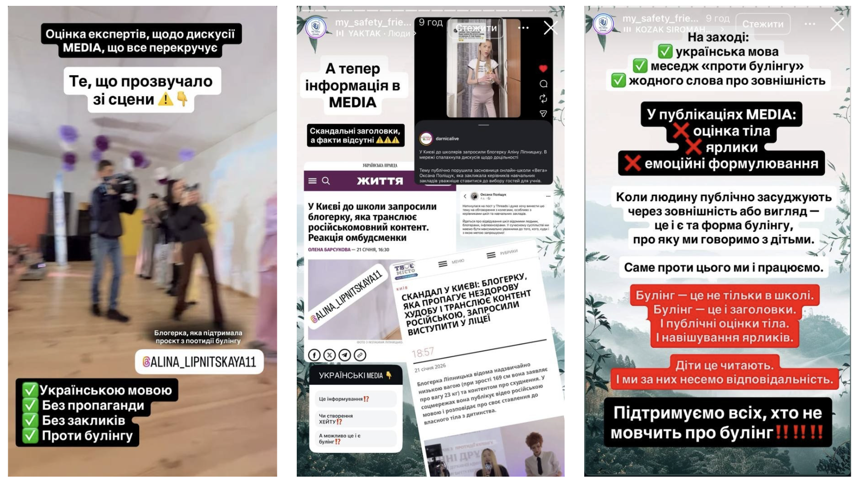 Фото із соцмереж Аліни Ліпницької та команди проєкту «Мої безпечні друзі»