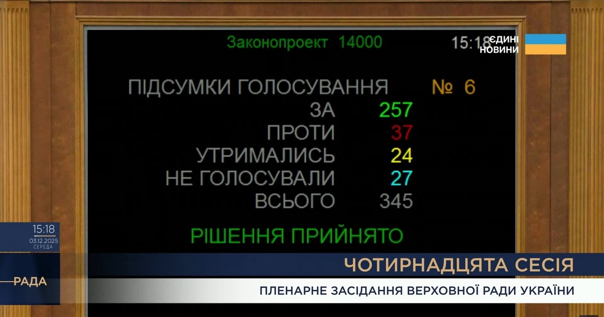 Верховна Рада ухвалила проєкт Закону про Державний бюджет України на 2026 рік. За проголосували 257 депутатів / депутаток.