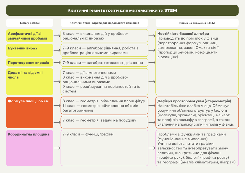 Українські учні й учениці демонструють суттєве зниження рівня математичної підготовки, а ключові освітні втрати формуються вже в шостому класі. Таких висновків дійшли автори трирівневого дослідження «Освітні втрати з математики», яке у 2024–2025 роках провела студія онлайн-освіти «EdEra» спільно з «The Tokarev Foundation».