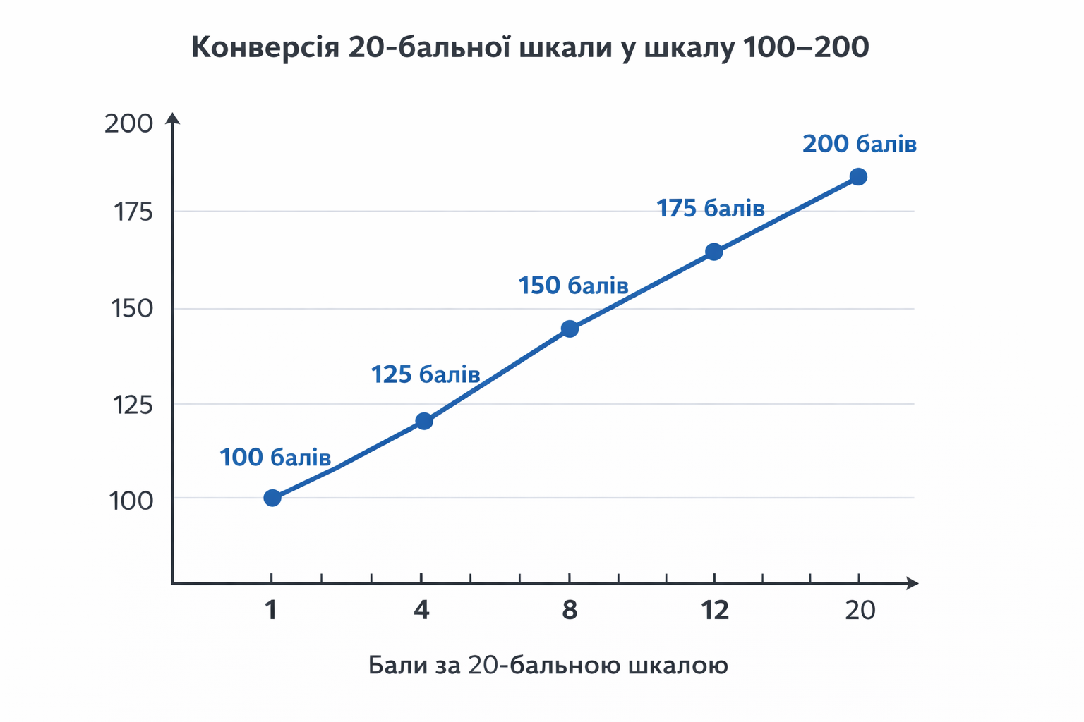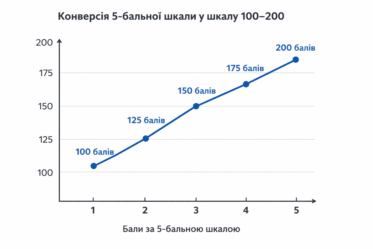 Аналогічно, у 5-бальній системі оцінка 3 із 5 трансформується приблизно у 150 балів.