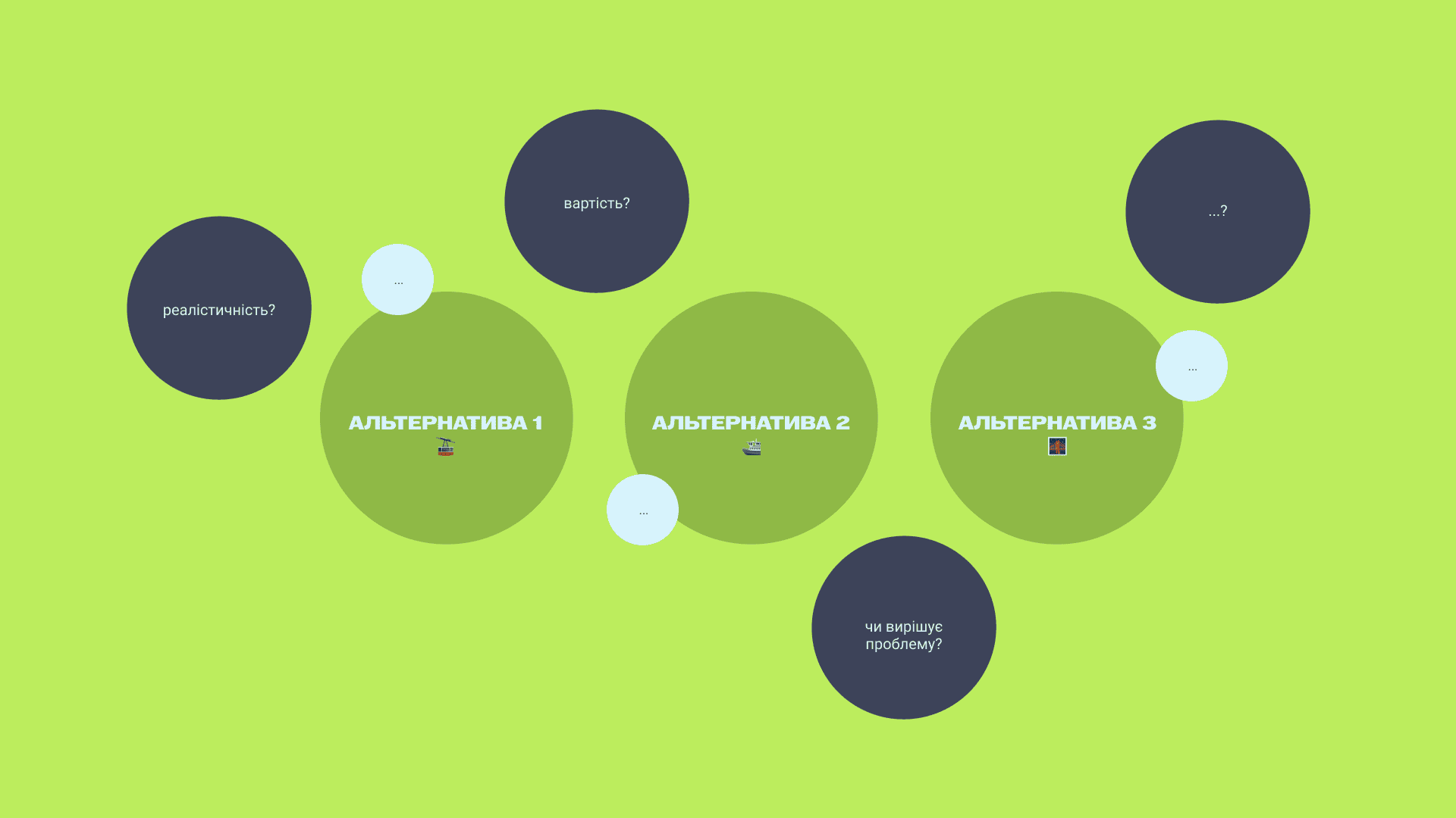 - Альтернативи: які три шляхи розв’язання ви бачили?