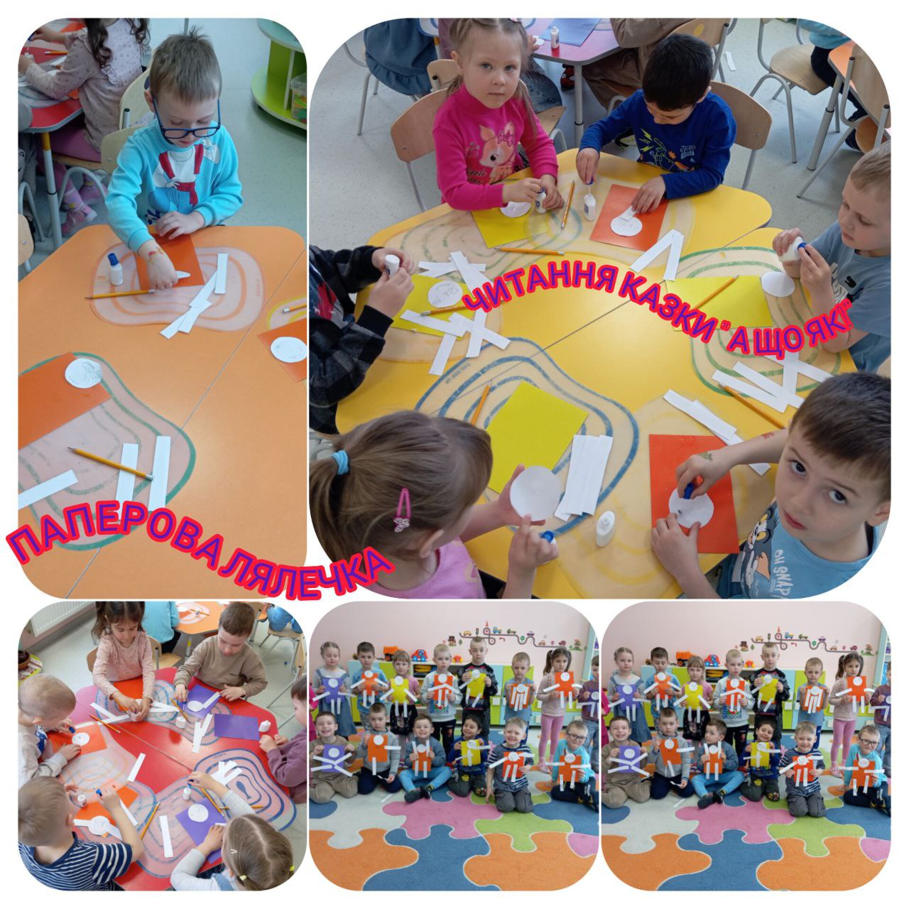 - упродовж трьох занять на тиждень діти обговорюють історію, займаються поробками для закріплення здобутих навичок.