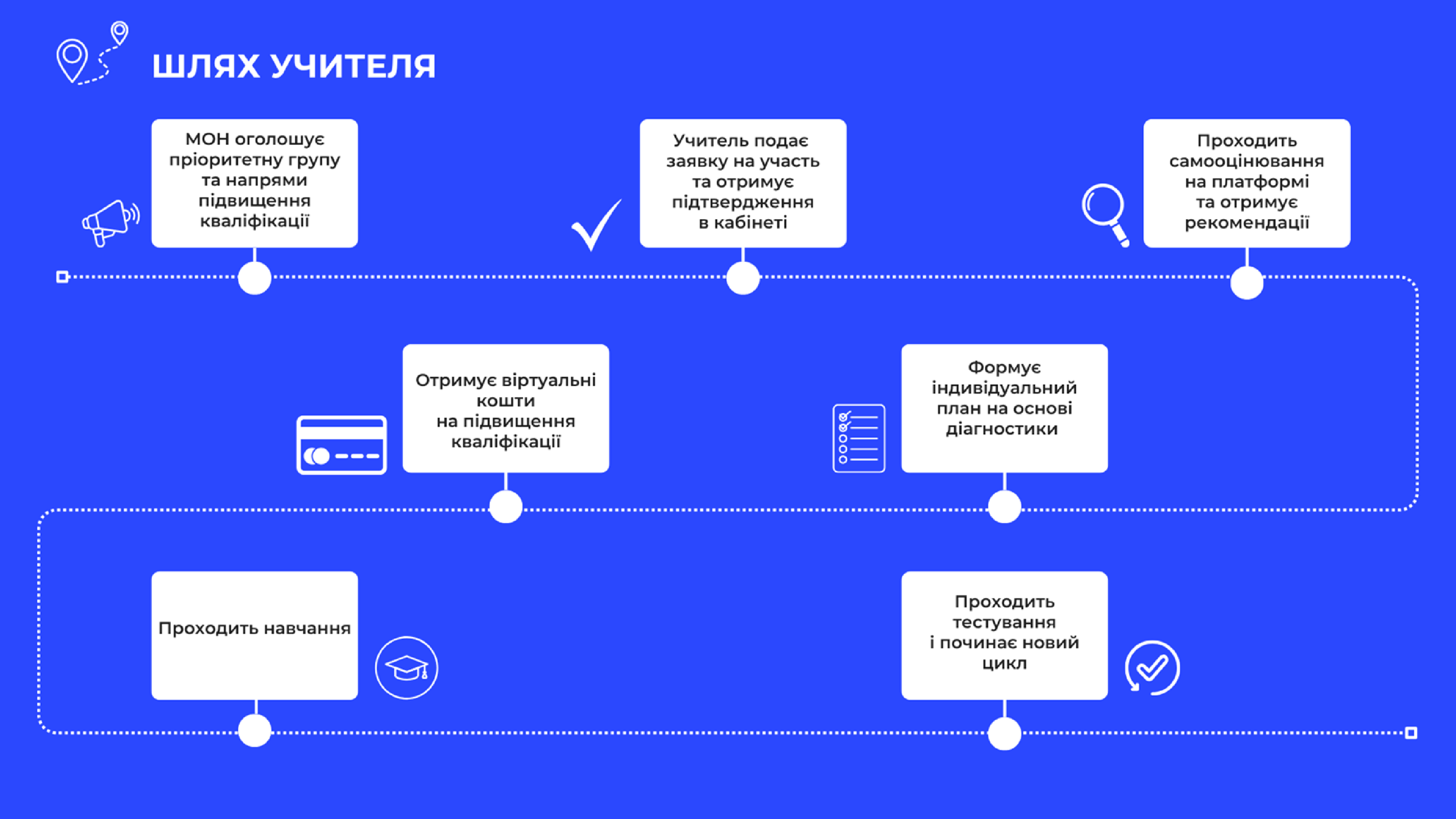 «Якщо УІРО підтвердить вашу участь, це означатиме, що ви виконали всі вимоги. Тоді отримаєте відповідну позначку на платформі, і вчительство зможе використовувати віртуальні кошти для оплати ваших курсів», — пояснив Владислав Штегельський.
