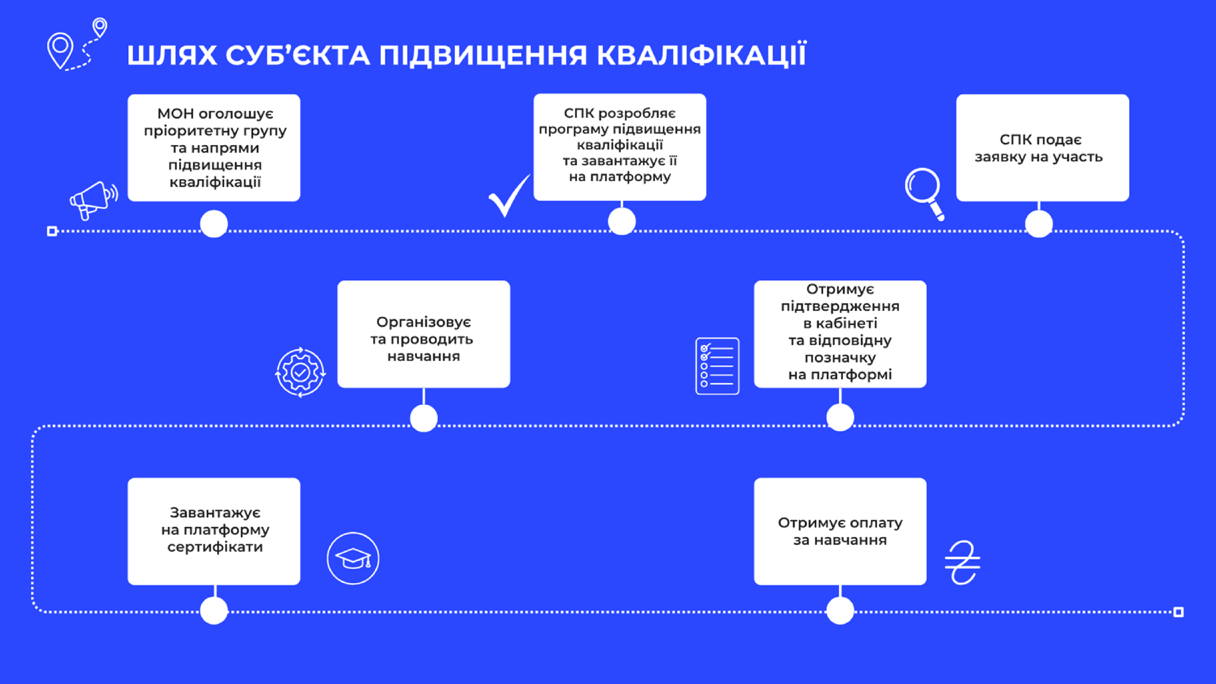 - Зареєструватися на платформі як суб’єкт підвищення кваліфікації.
