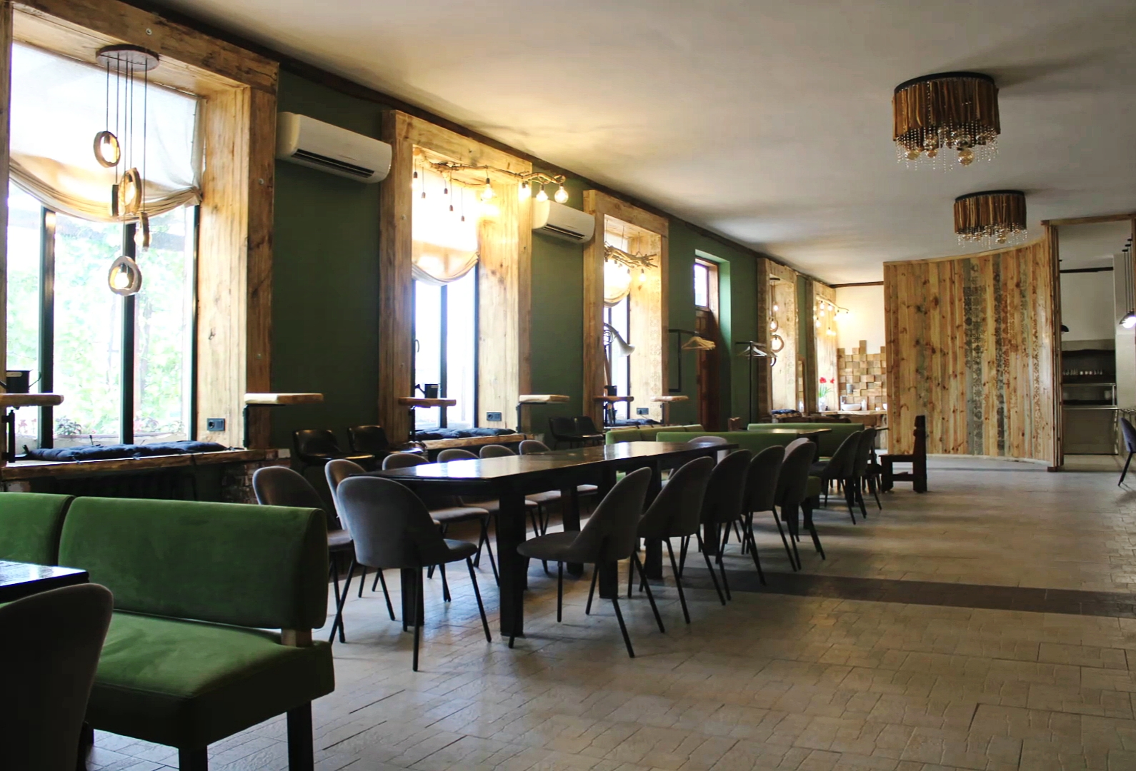 - їдальня, де місцями замість скла на вікнах були дошки;