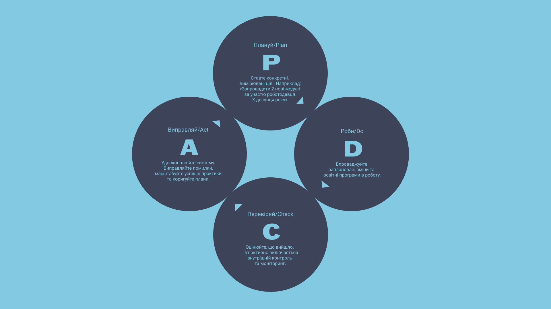 У її основі — класичний цикл Демінга: Plan → Do → Check → Act: