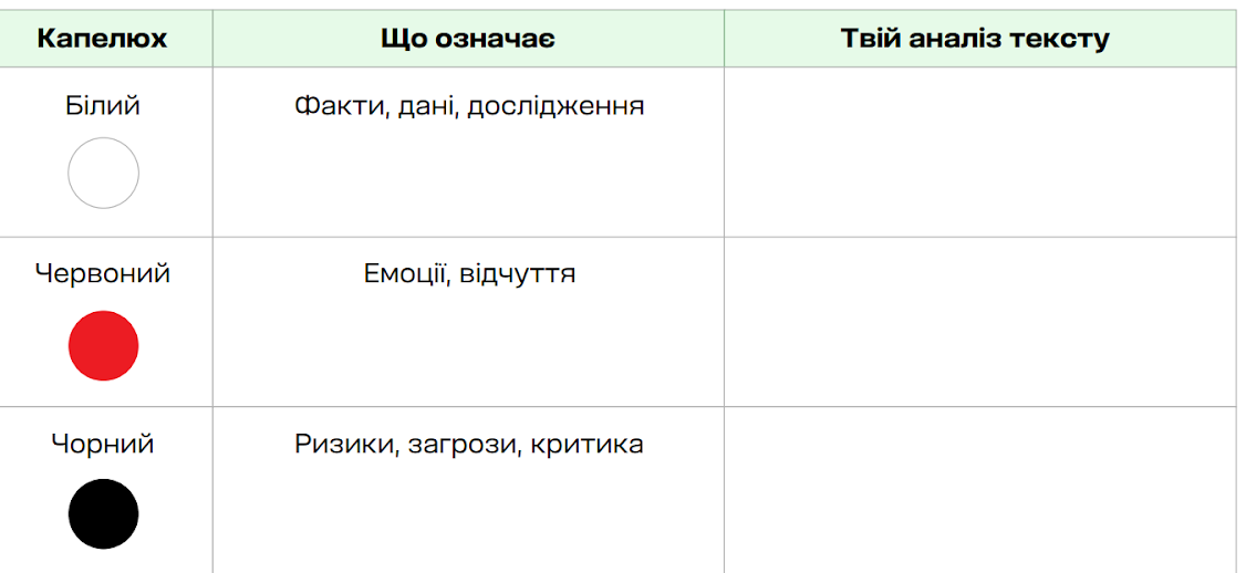 - Вправа «Шість капелюхів» за методом Едварда де Боно