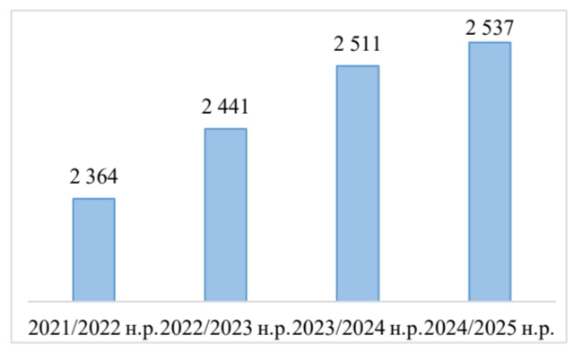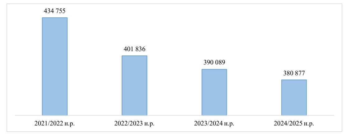 Варто зауважити, що кількість учнів / учениць на один ЗЗСО порівняно з 2021–2022 навчальним роком у 2024–2025-му зросла на п’ять осіб. Натомість протягом трьох останніх років дослідники спостерігали негативну динаміку. За два попередні роки кількість дітей на один ЗЗСО зменшувалася на три особи за рік.