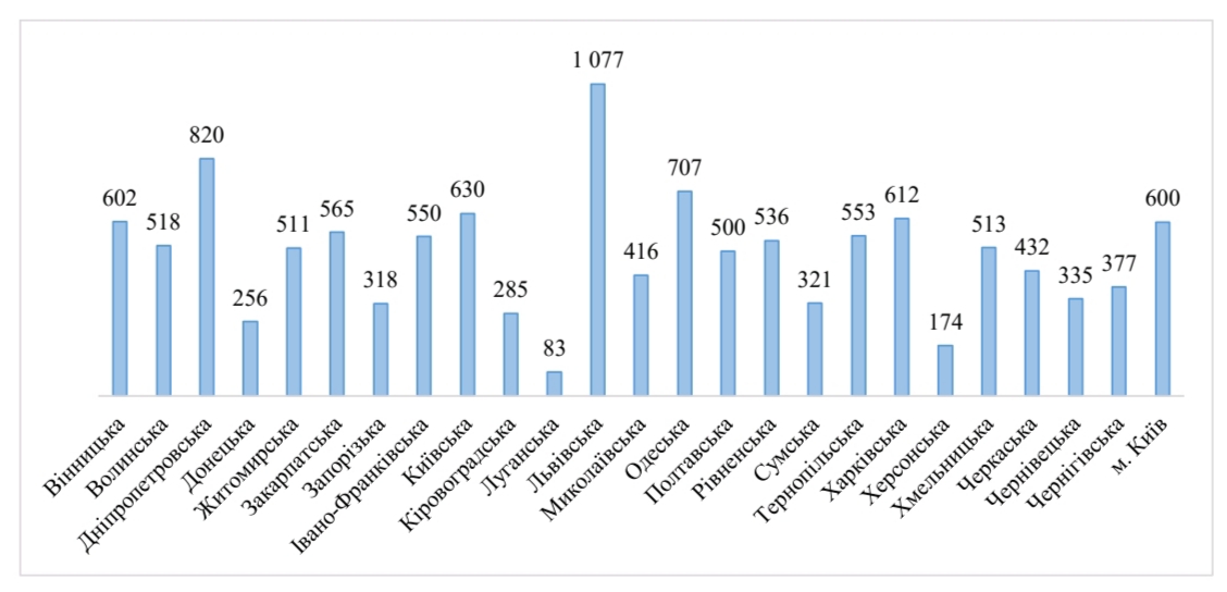 - Львівська область — 1 077 закладів загальної середньої освіти;